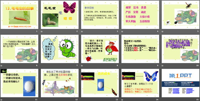 关键词:毛毛虫的故事教学课件,语文A版三年级上册语文课件,三年级语文幻灯片课件下载,毛毛虫的故事PPT课件下载,.ppt格式