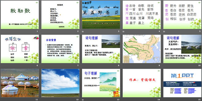 关键词:敕勒歌教学课件,语文A版三年级上册语文课件,三年级语文幻灯片课件下载,敕勒歌PPT课件下载,.ppt格式