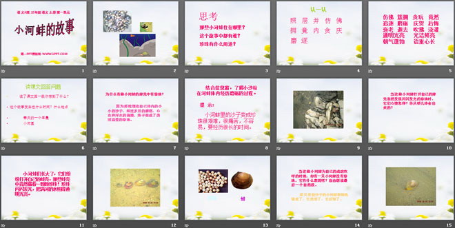 关键词:小河蚌的故事教学课件,语文A版三年级上册语文课件,三年级语文幻灯片课件下载,小河蚌的故事PPT课件下载,.ppt格式