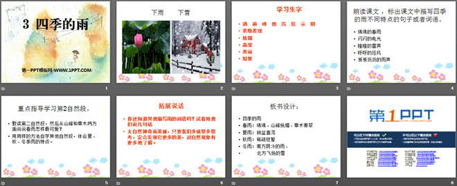 关键词:四季的雨教学课件,语文A版三年级下册语文课件,三年级语文幻灯片课件下载,四季的雨PPT课件下载,.ppt格式