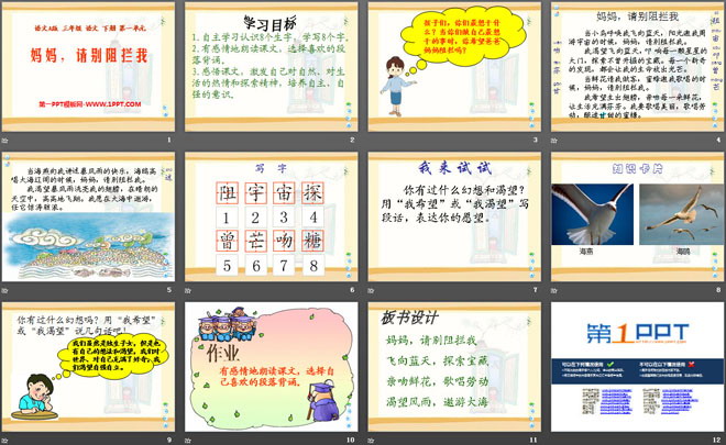 关键词:妈妈请别阻拦我教学课件,语文A版三年级下册语文课件,三年级语文幻灯片课件下载,妈妈请别阻拦我PPT课件下载,.ppt格式