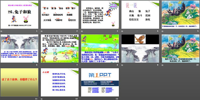 关键词:兔子和狼教学课件,语文A版三年级上册语文课件,三年级语文幻灯片课件下载,兔子和狼PPT课件下载,.ppt格式