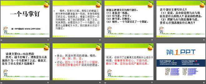 关键词:一个马掌钉教学课件,语文A版三年级上册语文课件,三年级语文幻灯片课件下载,一个马掌钉PPT课件下载,.ppt格式