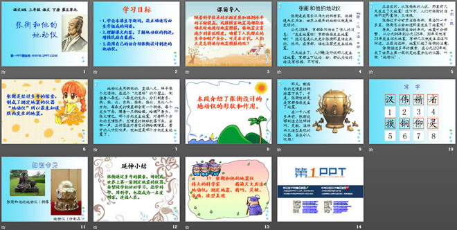关键词:张衡和他的地动仪教学课件,语文A版三年级下册语文课件,三年级语文幻灯片课件下载,张衡和他的地动仪PPT课件下载,.ppt格式