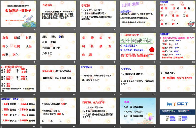关键词:假如我是一颗种子教学课件,语文A版三年级下册语文课件,三年级语文幻灯片课件下载,假如我是一颗种子PPT课件下载,.ppt格式
