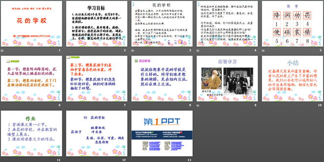 关键词:花的学校教学课件,语文A版三年级下册语文课件,三年级语文幻灯片课件下载,花的学校PPT课件下载,.ppt格式