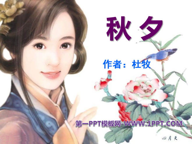 秋夜,白色而精美的烛在秋夜里发出微弱的光,画屏上添了几分清冷之色,一位宫女、手执绫罗小扇,轻轻地扑打飞舞的萤火虫。天阶上的夜色,清凉如水;坐榻仰望星空,牵牛星正遥望着织女星。