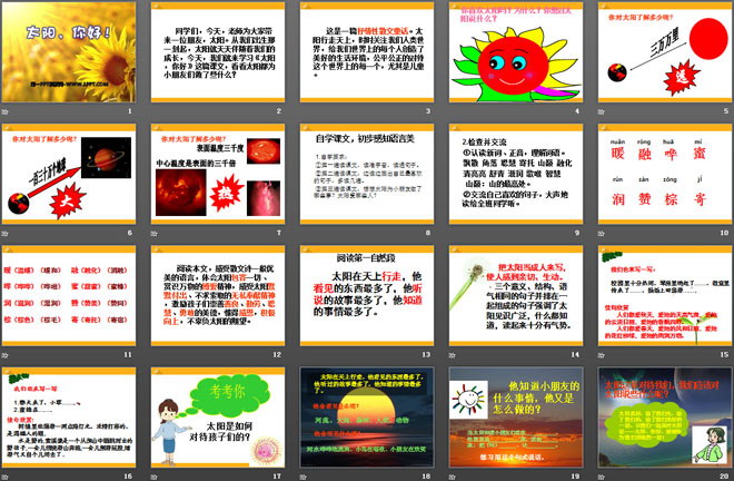 关键词:太阳你好教学课件,语文A版四年级上册语文课件,四年级语文幻灯片课件下载,太阳你好PPT课件下载,.ppt格式