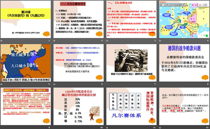 关键词:部编人教版九年级下册历史PPT课件免费下载,凡尔赛条约和九国公约PPT下载,.PPT格式;