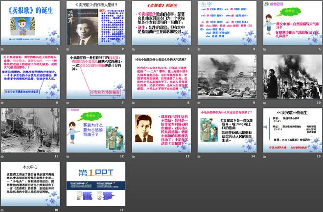 关键词:卖报歌的诞生教学课件,语文A版四年级上册语文课件,四年级语文幻灯片课件下载,卖报歌的诞生PPT课件下载,.ppt格式