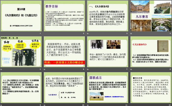 关键词:部编人教版九年级下册历史PPT课件免费下载,《凡尔赛条约》和《九国公约》PPT下载,.PPT格式;