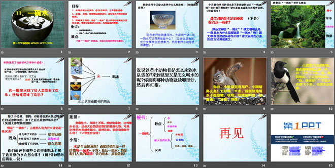 3、理解课文内容,体会“一碗水”给人和动物带来的方便和乐趣,激发学生热爱大自然、热爱生活的情感。