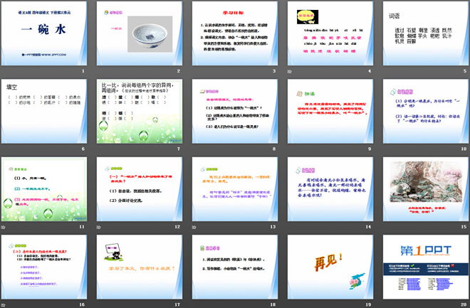 关键词:一碗水教学课件,语文A版四年级下册语文课件,四年级语文幻灯片课件下载,一碗水PPT课件下载,.ppt格式