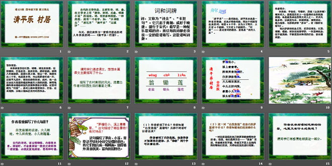 关键词:清平乐村居教学课件,语文A版四年级下册语文课件,四年级语文幻灯片课件下载,清平乐村居PPT课件下载,.ppt格式