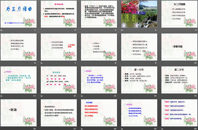 关键词:为三月谱曲教学课件,语文A版四年级下册语文课件,四年级语文幻灯片课件下载,为三月谱曲PPT课件下载,.ppt格式