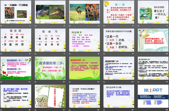 关键词:一只鹿和一千条鳄鱼教学课件,语文A版四年级下册语文课件,四年级语文幻灯片课件下载,一只鹿和一千条鳄鱼PPT课件下载,.ppt格式