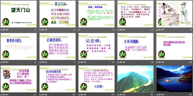 关键词:望天门山教学课件,语文A版五年级上册语文课件,五年级语文幻灯片课件下载,望天门山PPT课件下载,.ppt格式