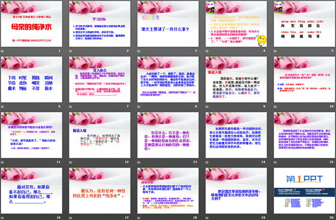 关键词:母亲的纯净水教学课件,语文A版五年级上册语文课件,五年级语文幻灯片课件下载,母亲的纯净水PPT课件下载,.ppt格式
