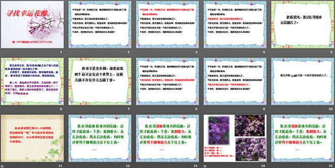 关键词:寻找幸运花瓣教学课件,语文A版五年级上册语文课件,五年级语文幻灯片课件下载,寻找幸运花瓣PPT课件下载,.ppt格式
