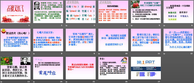 关键词:石榴又红了教学课件,语文A版五年级上册语文课件,五年级语文幻灯片课件下载,石榴又红了PPT课件下载,.ppt格式