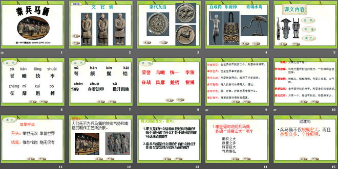 关键词:秦兵马俑教学课件,语文A版五年级下册语文课件,五年级语文幻灯片课件下载,秦兵马俑PPT课件下载,.ppt格式