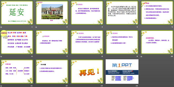 关键词:延安教学课件,语文A版五年级下册语文课件,五年级语文幻灯片课件下载,延安PPT课件下载,.ppt格式
