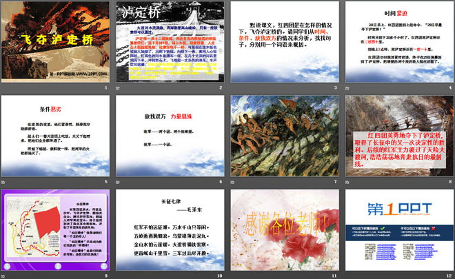 关键词:飞夺泸定桥教学课件,语文A版五年级下册语文课件,五年级语文幻灯片课件下载,飞夺泸定桥PPT课件下载,.ppt格式