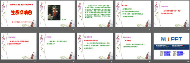 关键词:生命交响曲教学课件,语文A版五年级下册语文课件,五年级语文幻灯片课件下载,生命交响曲PPT课件下载,.ppt格式