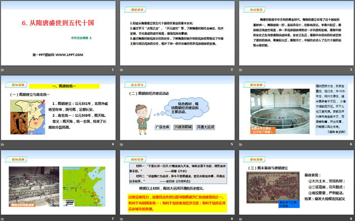 1.知道从隋唐建立到五代十国政权更迭的基本史实;