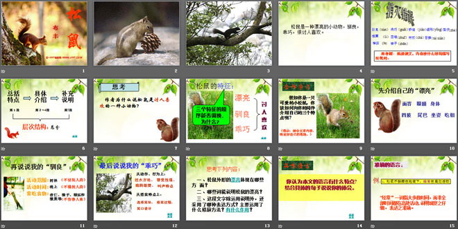 思考题:熟读课文,内容按什么结构描写松鼠的。
