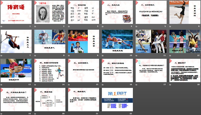 关键词:体育颂教学课件,语文A版五年级下册语文课件,五年级语文幻灯片课件下载,体育颂PPT课件下载,.ppt格式