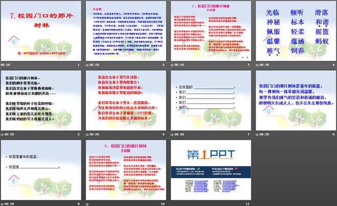 关键词:校园门口的那片树林教学课件,语文A版六年级上册语文课件,六年级语文幻灯片课件下载,校园门口的那片树林PPT课件下载,.ppt格式