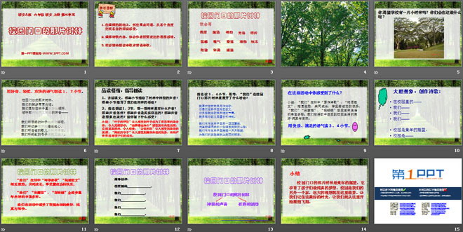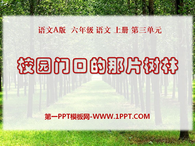 关键词:校园门口的那片树林教学课件,语文A版六年级上册语文课件,六年级语文幻灯片课件下载,校园门口的那片树林PPT课件下载,.ppt格式