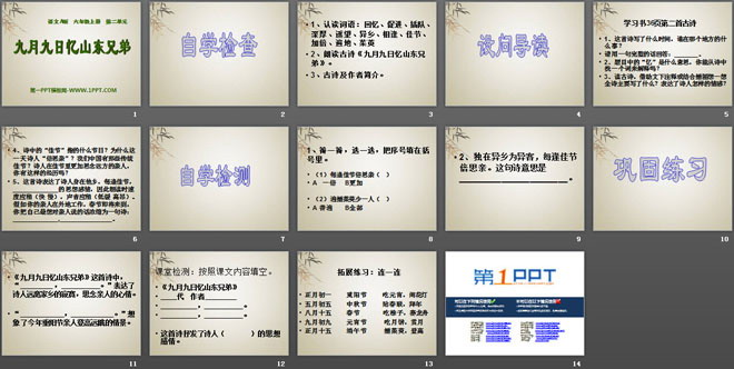 关键词:九月九日忆山东兄弟教学课件,语文A版六年级上册语文课件,六年级语文幻灯片课件下载,九月九日忆山东兄弟PPT课件下载,.ppt格式
