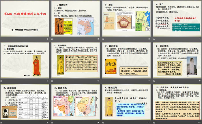 关键词:统编版中外历史纲要上册PPT课件免费下载,从隋唐盛世到五代十国PPT下载,三国两晋南北朝的民族交融与隋唐统一多民族封建国家的发展PPT下载,.PPT格式;