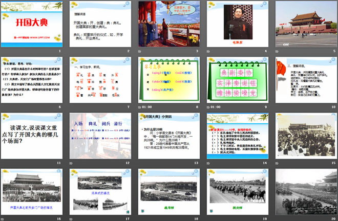 关键词:开国大典教学课件,语文A版六年级上册语文课件,六年级语文幻灯片课件下载,开国大典PPT课件下载,.ppt格式