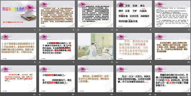 1、课下请大家发挥想象,设想一下,如果有一天小钱和那位捐骨髓的台湾青年相遇了,他们会说些什么?