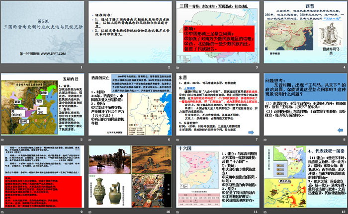 关键词:统编版中外历史纲要上册PPT课件免费下载,三国两晋南北朝的政权更迭与民族交融PPT下载,三国两晋南北朝的民族交融与隋唐统一多民族封建国家的发展PPT下载,.PPT格式;