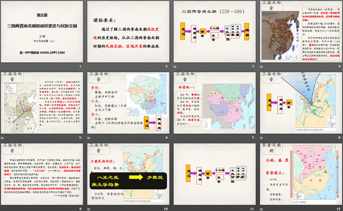 通过了解三国两晋南北朝政权更迭的历史脉络,认识三国两晋南北朝时期的民族交融、区域开发的新成就