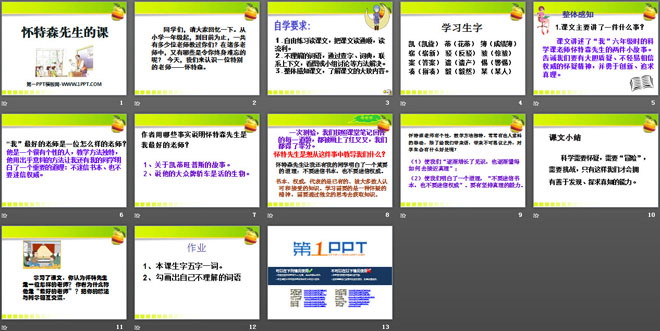 关键词:怀特森先生的课教学课件,语文A版六年级上册语文课件,六年级语文幻灯片课件下载,怀特森先生的课PPT课件下载,.ppt格式