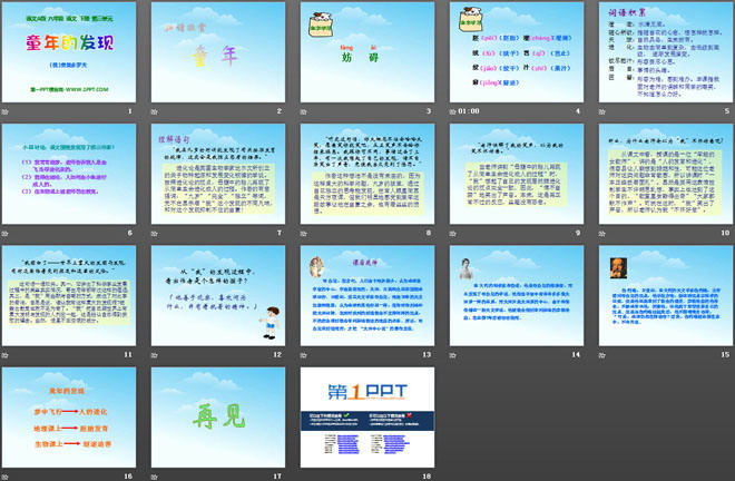 关键词:童年的发现教学课件,语文A版六年级下册语文课件,六年级语文幻灯片课件下载,童年的发现PPT课件下载,.ppt格式