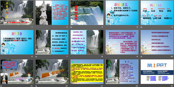 关键词:黄果树听瀑教学课件,语文A版六年级下册语文课件,六年级语文幻灯片课件下载,黄果树听瀑PPT课件下载,.ppt格式