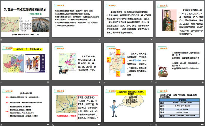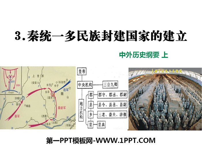 关键词:统编版中外历史纲要上册PPT课件免费下载,秦统一多民族封建国家的建立PPT下载,从中华文明起源到秦汉大一统封建国家的建立与巩固PPT下载,.PPT格式;
