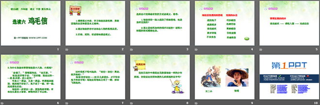关键词:鸡毛信教学课件,语文A版六年级下册语文课件,六年级语文幻灯片课件下载,鸡毛信PPT课件下载,.ppt格式