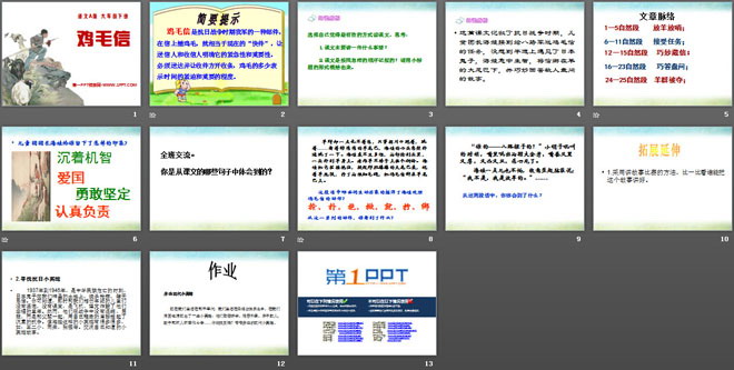 关键词:鸡毛信教学课件,语文A版六年级下册语文课件,六年级语文幻灯片课件下载,鸡毛信PPT课件下载,.ppt格式