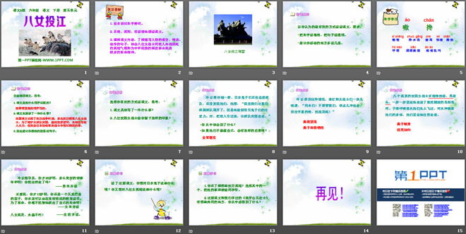 关键词:八女投江教学课件,语文A版六年级下册语文课件,六年级语文幻灯片课件下载,八女投江PPT课件下载,.ppt格式