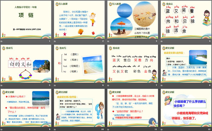 关键词:部编人教版一年级上册语文PPT课件免费下载,《项链》PPT下载,.PPT格式;