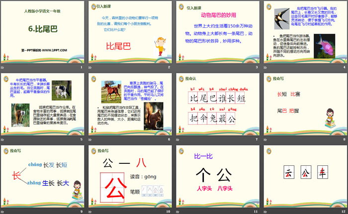 关键词:部编人教版一年级上册语文PPT课件免费下载,《比尾巴》PPT下载,.PPT格式;