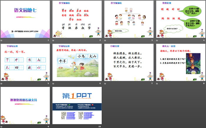 关键词:部编人教版一年级上册语文PPT课件免费下载,《语文园地七》PPT下载,.PPT格式;