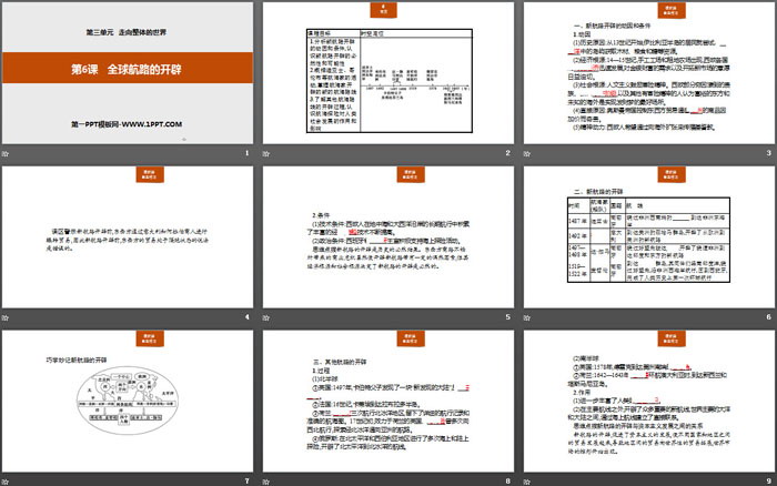 关键词:统编版中外历史纲要下册PPT课件免费下载,全球航路的开辟PPT下载,走向整体的世界PPT下载,.PPT格式;